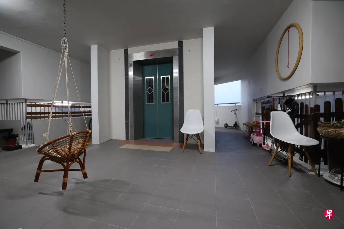 网上日前流传一段视频,显示武吉班让信佳路第606座组屋28楼的电梯外,悬挂着一张吊椅。