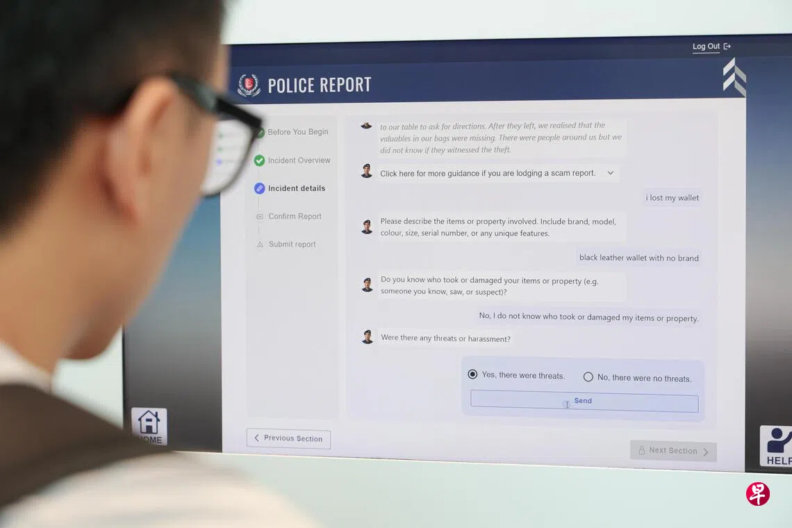 新加坡警察部队10月1日起在七大警署总部推出新型人工智能聊天机器人,让公众通过“聊天”的方式在报案时梳理思绪及语言,避免遗漏关键信息,更顺畅地完成报案。