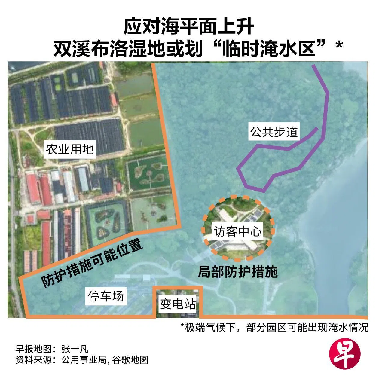 “例如,把防护措施建在栖息地后方,或在极端天气发生时,允许双溪布洛部分园区,如停车场短暂淹水。”