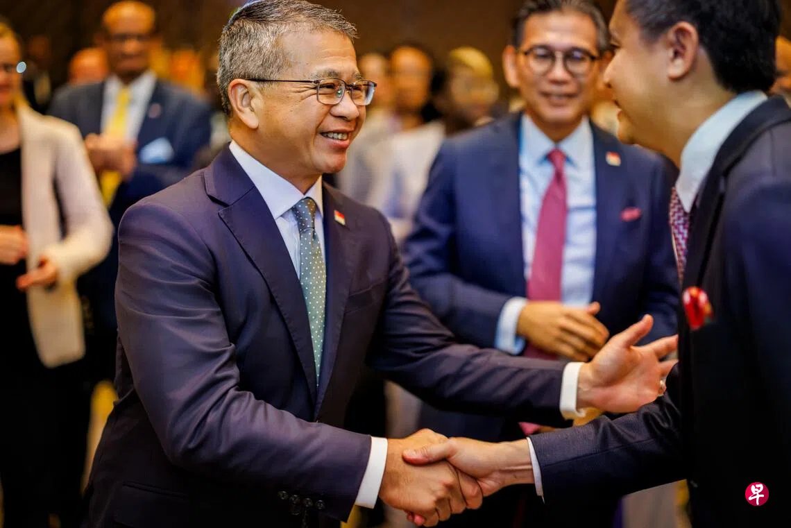 唐振辉出席相关的外交招待会,表扬邓鸿森自2020年10月担任联合国世界知识产权组织(World Intellectual Property Organization,简称WIPO)总干事以来,所做出的各种贡献,并指出新加坡当年提名他竞逐的一个主要原因,是新加坡致力于推动多边体系,而这个体系维护和推进全球共同利益。
