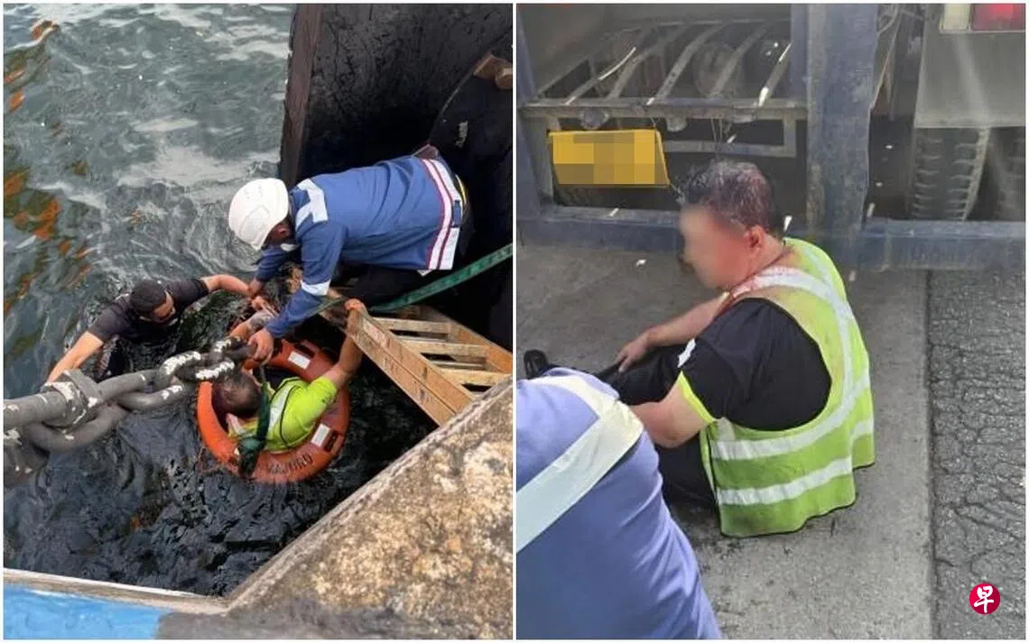 裕廊海港发生落水事故,一名男罗厘司机被救援人员救起,头部受伤送院救治。