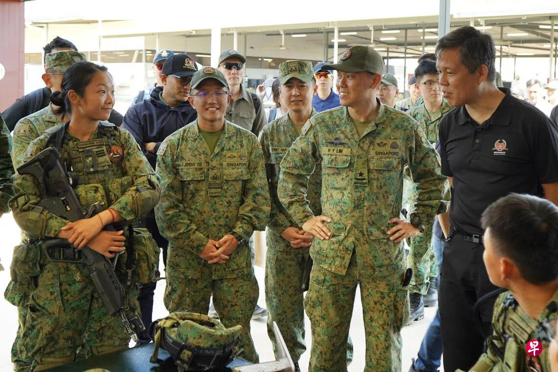 国防部星期一(10月6日)发文告说,公共服务统筹部长兼国防部长陈振声,星期天(5日)到澳大利亚进行工作访问期间,前往昆士兰肖尔沃特湾(Shoalwater Bay)训练区,视察在那里举行的袋鼠演习(Exercise Wallaby)。