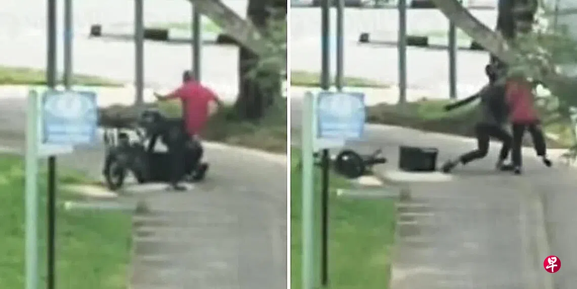 他说,一名较年长的男子似乎对骑士发怒,甚至一脚踢倒电动脚踏车,双方接着打了起来。电动脚踏车骑士事后骑车离开,相信是不想再与阿叔纠缠。