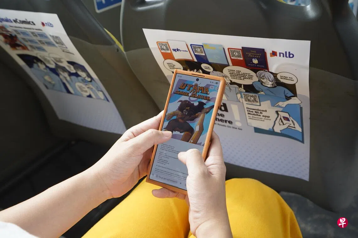除了下载这两套电子漫画,乘坐这些巴士的乘客,也可通过扫描QR码,借阅其他图管局的电子读物,包括新报业媒体的报章、国际科学刊物《新科学人》(New Scientist)以及英文书The Midnight Library。