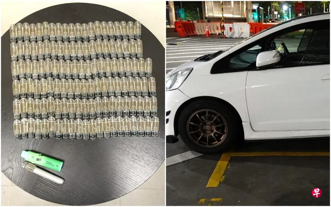 文告说,调查人员从车中起获两个电子烟和127个疑似含依托咪酯的电子烟烟弹,过后还在青年位于勿洛的住处起获五个烟弹。