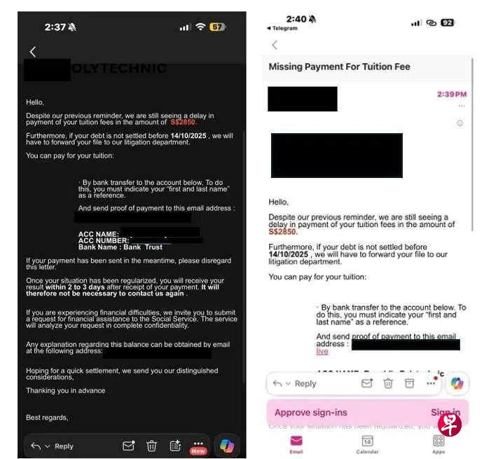随后,骗子会要求受害者将款项汇入指定的银行户头,并警告若不尽快付款,将遭学校诉讼部门采取行动。