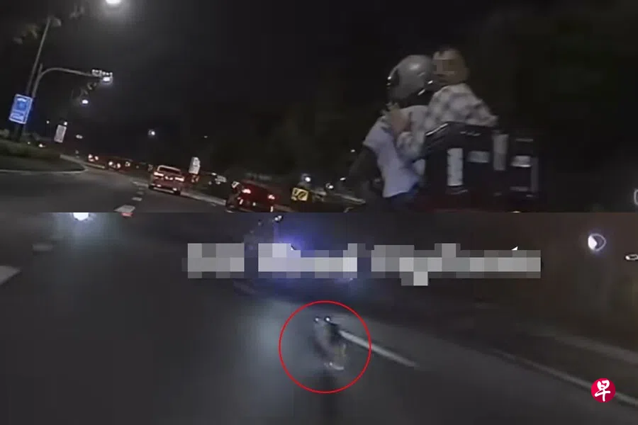 脸书群组“SGRV”上传一段视频显示,一辆正在快速公路行驶的电单车载着一名后座乘客,岂料后座乘客的头盔竟在途中飞出,掉落路上。