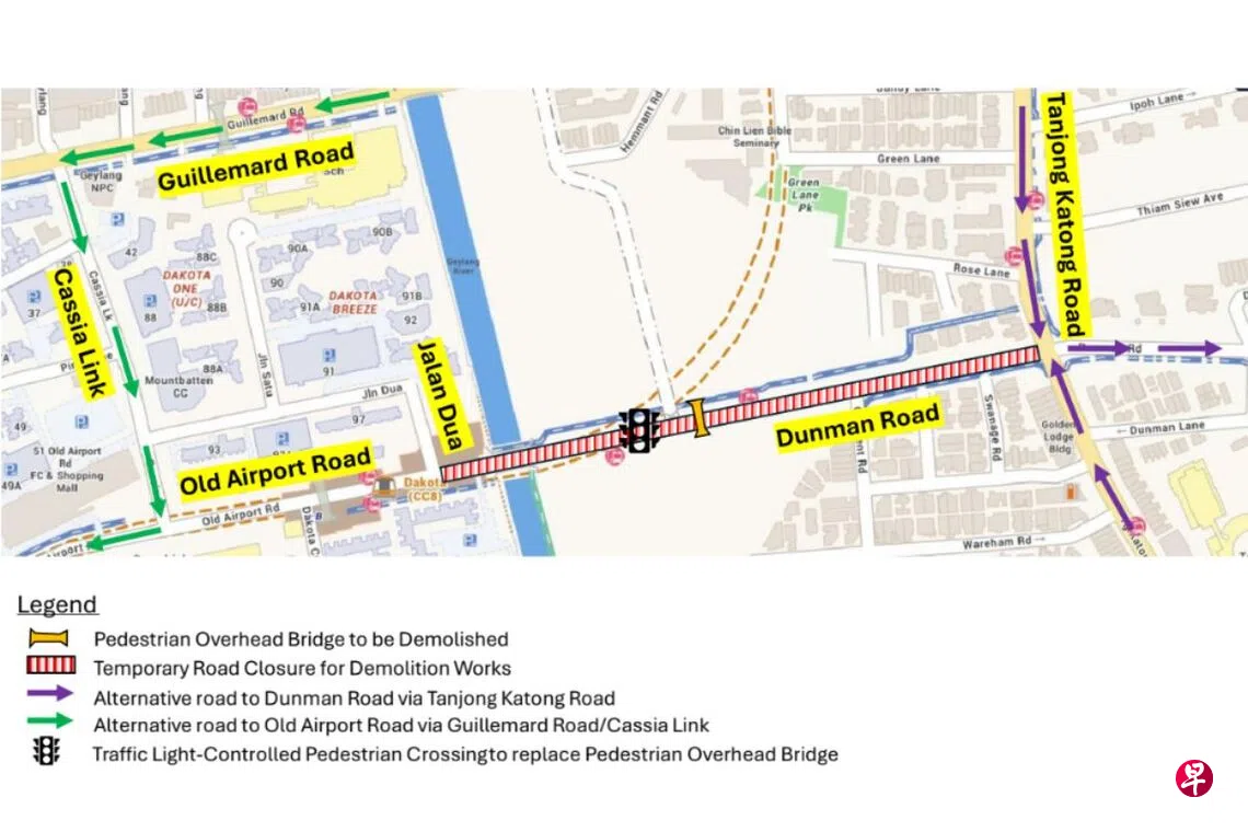 介于丹戎加东路和惹兰都亚(Jalan Dua)之间的德明路路段,将于下星期二(10月28日)凌晨1时30分至5时关闭,以拆除原基里玛兵营附近、横跨德明路的行人天桥。
