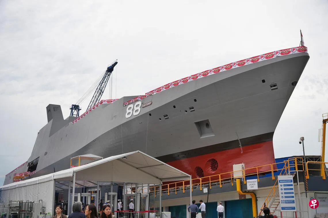 下水仪式星期二(10月21日)在新科工程的贲耐(Benoi)船厂举行,由公共服务统筹部长兼国防部长陈振声主持。出席仪式的还包括:国防部政务部长朱倍庆、新加坡武装部队总长孟耀诚海军中将、海军总长屈坚文少将,以及国防部、武装部队和国防科技局的高级官员。