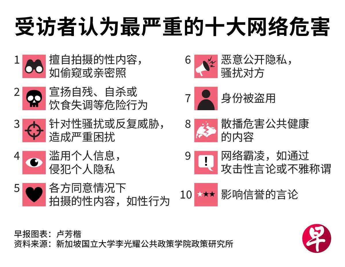 新加坡国立大学李光耀公共政策学院政策研究所(Institute of Policy Studies,简称IPS)星期三(10月22日)发布名为“新加坡网络危害:从证据到行动”的调查结果,探讨新加坡人如何看待网络危害,包括这些危害有多严重,以及对现有法律、政策和宣导力度的看法。调查由数码发展及新闻部委托进行。