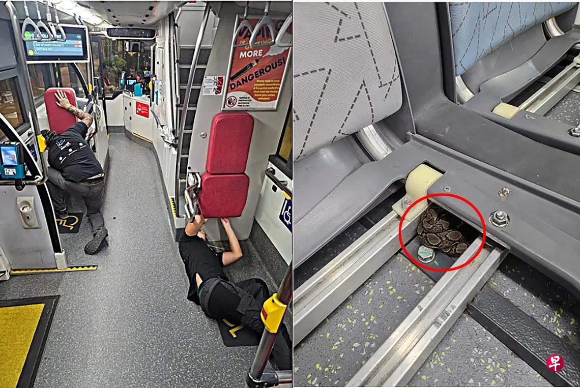 SMRT巴士副董事经理倪政权回复《新明日报》询问时说,一名巴士车长在21日晚上9时05分左右驾驶901M号巴士驶过兀兰1道一带时,发现巴士上有一条蟒蛇。
