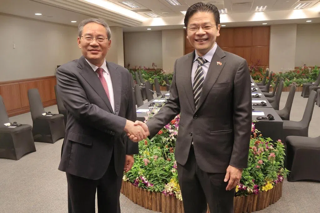 中国总理李强与我国代总统张赞成会面,针对中国和新加坡的合作展开讨论。