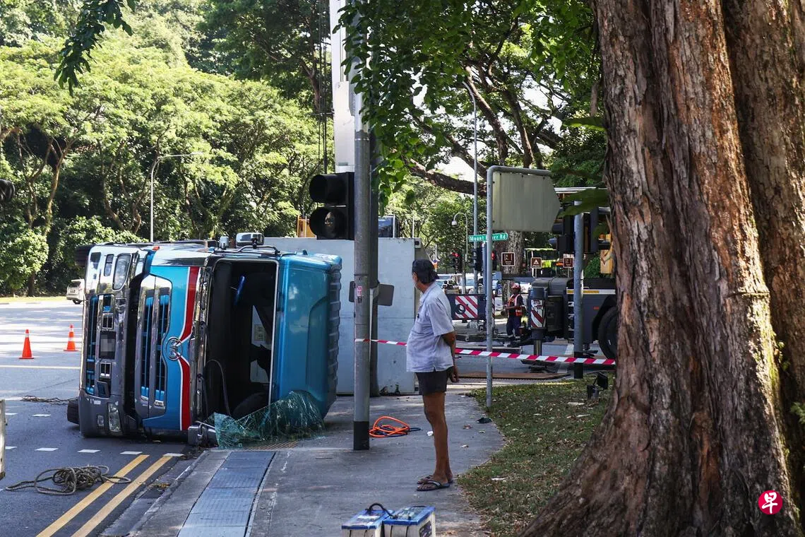 这起事故发生在星期四(10月30日)中午12时25分左右。肇事罗厘不知何故失控,冲上路堤,撞断路牌后向左侧翻,占据一条车道和部分行人道。事故发生后,罗厘的挡风玻璃碎裂。