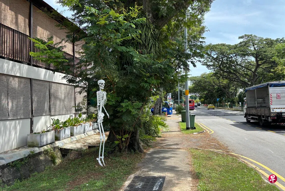 热心读者陈先生(72岁)告诉《新明日报》,他在星期二(11月4日)傍晚6时许经过时,被万圣节装饰的骷髅骨架吓了一大跳。