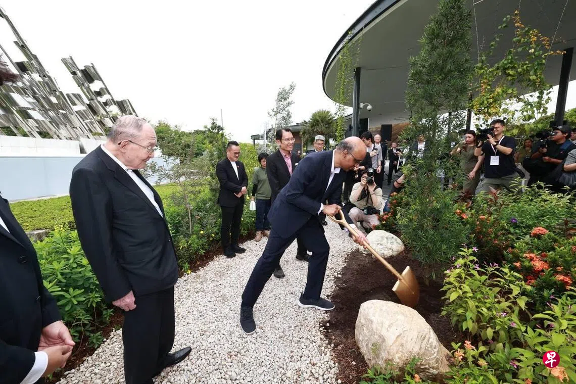 尚达曼总统星期四(11月13日)为滨海湾花园的永续发展展区主持开幕,并亲手种下一棵有着长寿、坚定和坚韧寓意的日本红豆杉(Japanese Yew)。