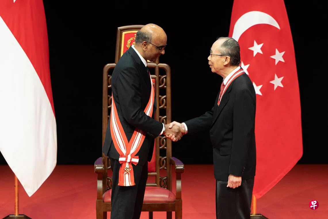此外,淡马锡防务教授暨新加坡核研究与安全院主席雷普权教授获颁殊功勋章;今年2月3日以103岁高龄逝世的书画家林子平则获追授荣誉。获颁功绩奖章者共12人,获公共服务星章(勋条)者则有15人。