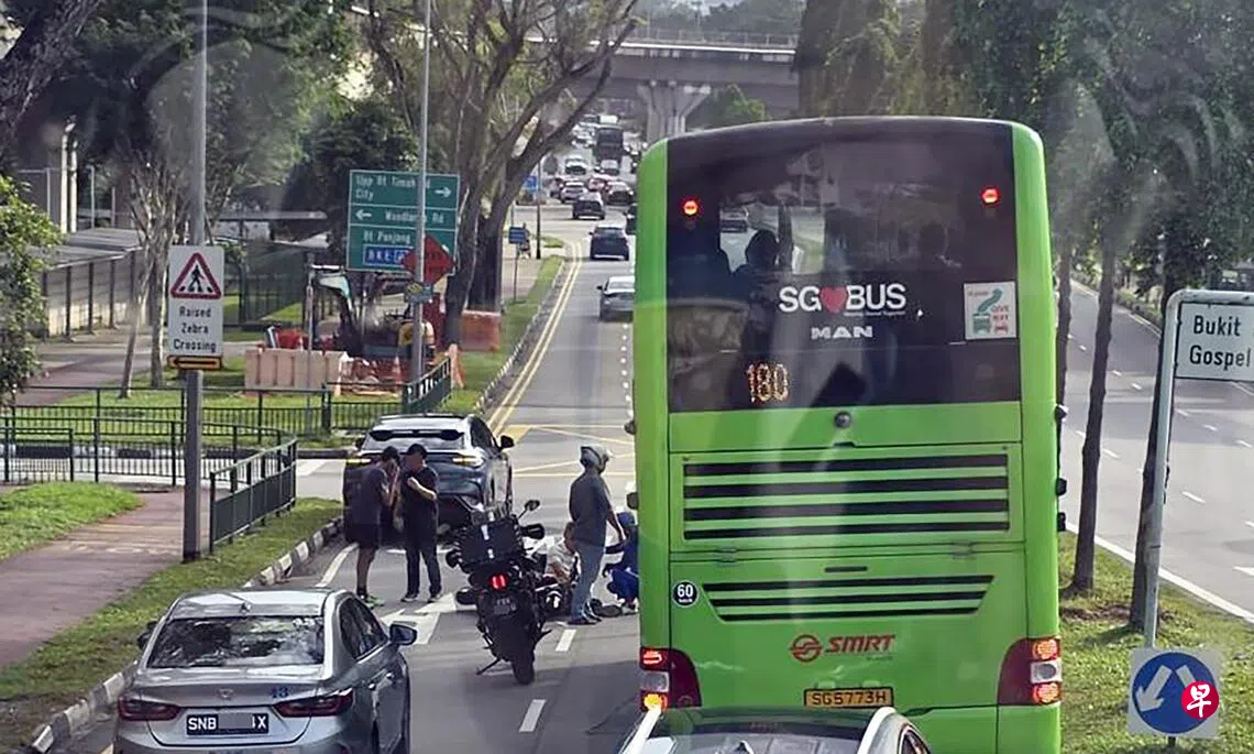 警方受询时证实接获通报,车祸涉及一辆汽车和一辆电单车。一名57岁男骑士在神志清醒下送院,开车的35岁男子正协助调查。新加坡民防部队说,有一人送往黄廷方综合医院。