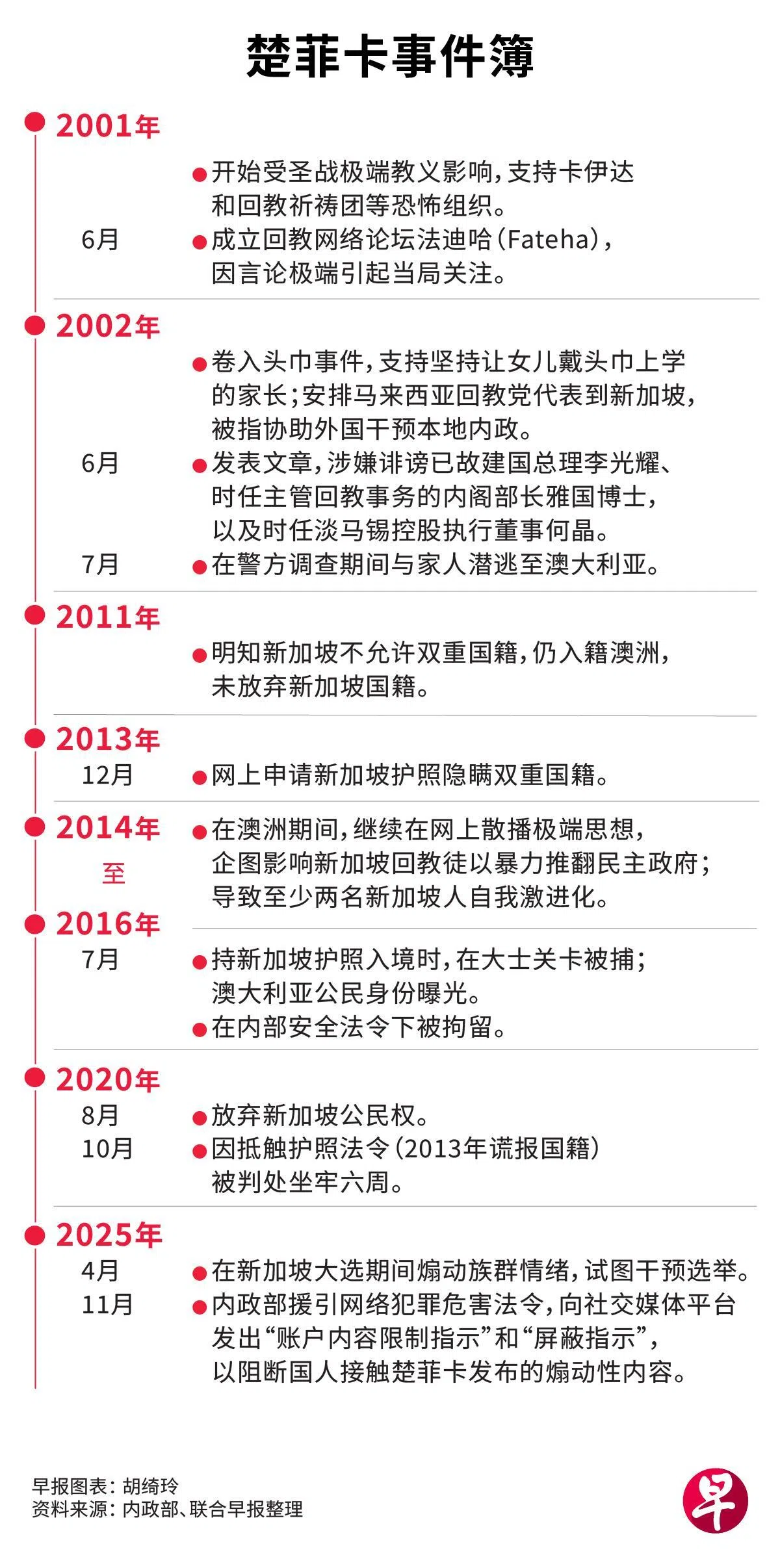 54岁的楚菲卡原为新加坡公民,2020年放弃我国国籍,目前持澳大利亚护照。他自2001年以来因支持恐怖组织和挑衅族群关系的言论,引起当局注意。