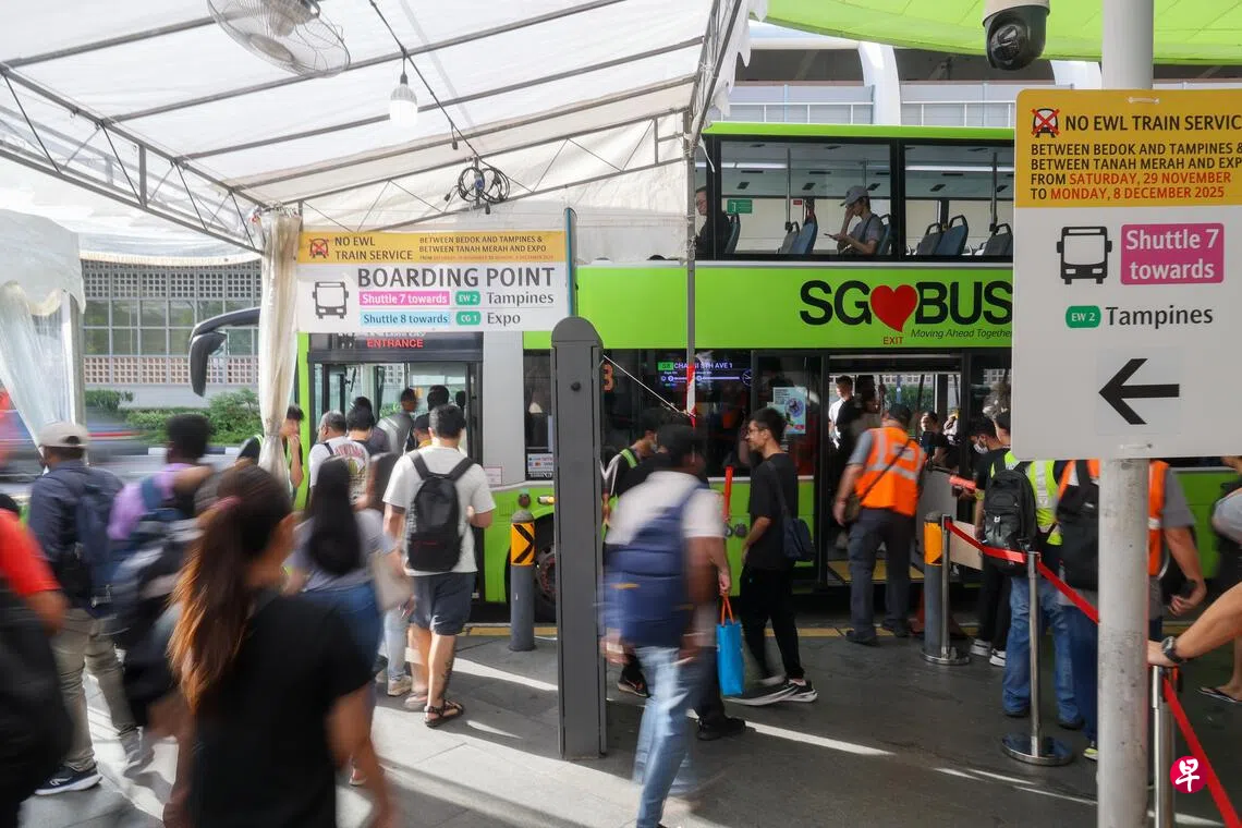 为了让乘客舒适出行,SMRT也在接驳巴士上下车处设置帐篷和风扇。“在等候时间可能较长的地点,我们将派水给乘客。”