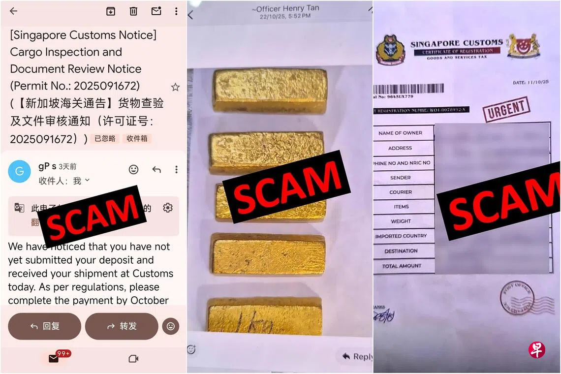 骗徒又出新招,假冒新加坡关税局人员联系受害者,谎称有包裹或金条被扣押,须支付相关费用调查为由,要受害者转账和提供银行账号资料。