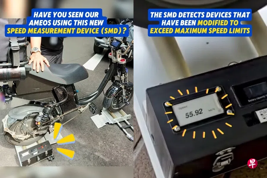 新的车速侦测装置(Speed Measurement Device)由淡马锡理工学院研发,能侦测电动脚踏车(PAB)和个人代步工具(PMD)的最高时速,是否被改装到超过25公里;以及行动辅助工具(PMA)是否超出每小时10公里的上限。