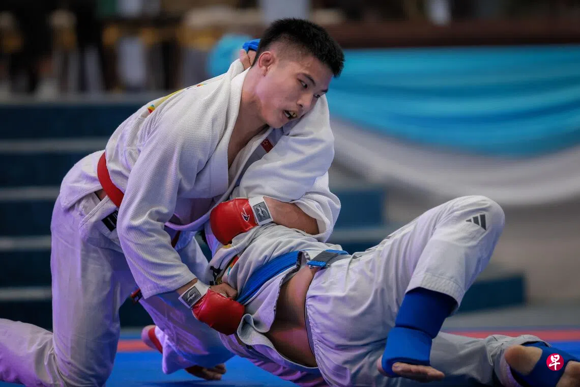 在星期三(12月10日)举行的东运会柔术男子格斗77公斤以下级决赛中,我国选手陈世杰以16比9战胜泰国本土选手安再·灿威(Aunjai Chanwit),夺得我国代表团本届比赛的第三金。