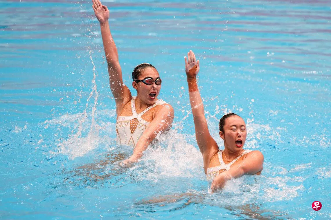 继在星期四(12月11日)的东运会女子花游双人自选预赛获得第一后,我国组合苏俐妃/张嬿在星期五(12日)的决赛再创佳绩,以474.5046的总分为新加坡代表团赢得第11面金牌。