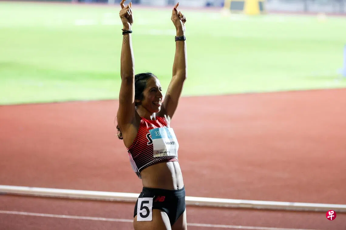 第七次参赛的珊蒂在两天前(星期四、11日)就于曼谷苏帕查拉赛体育场卫冕百米冠军。她在上一届的200米决赛以22秒69的成绩夺冠,刷新大会纪录的同时,也首次成为东运会短跑双料冠军。