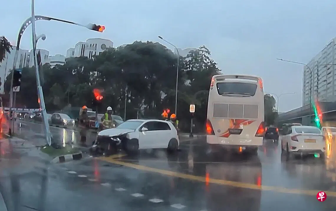 新加坡警察部队指出,汽车相信是行驶时打滑,导致车辆失控。
