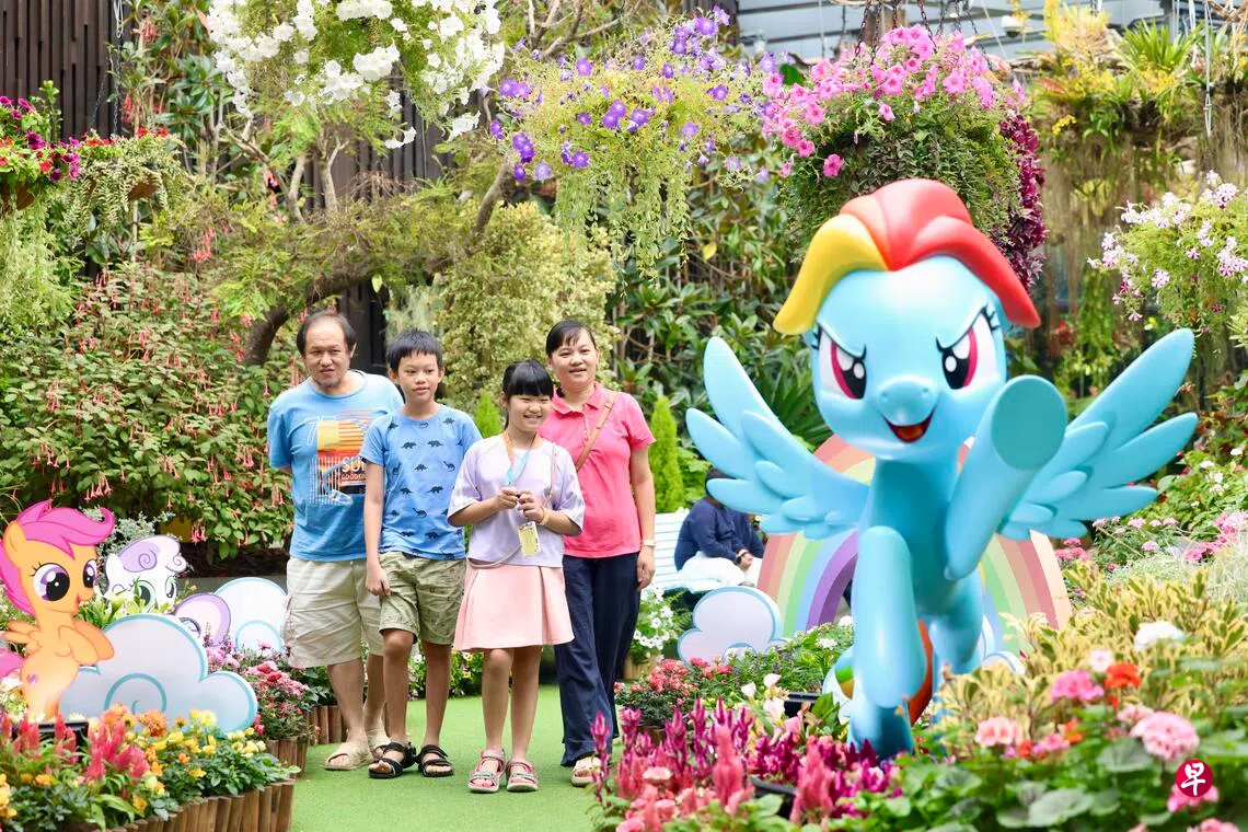 100名职总U关怀基金(NTUC-U Care Fund)的受益人及家属,星期天(12月14日)早上受邀参观滨海湾花园奇幻花园(Floral Fantasy)举办的“小马宝莉:友谊花语”(Little Pony Petals of Friendship)花卉展。