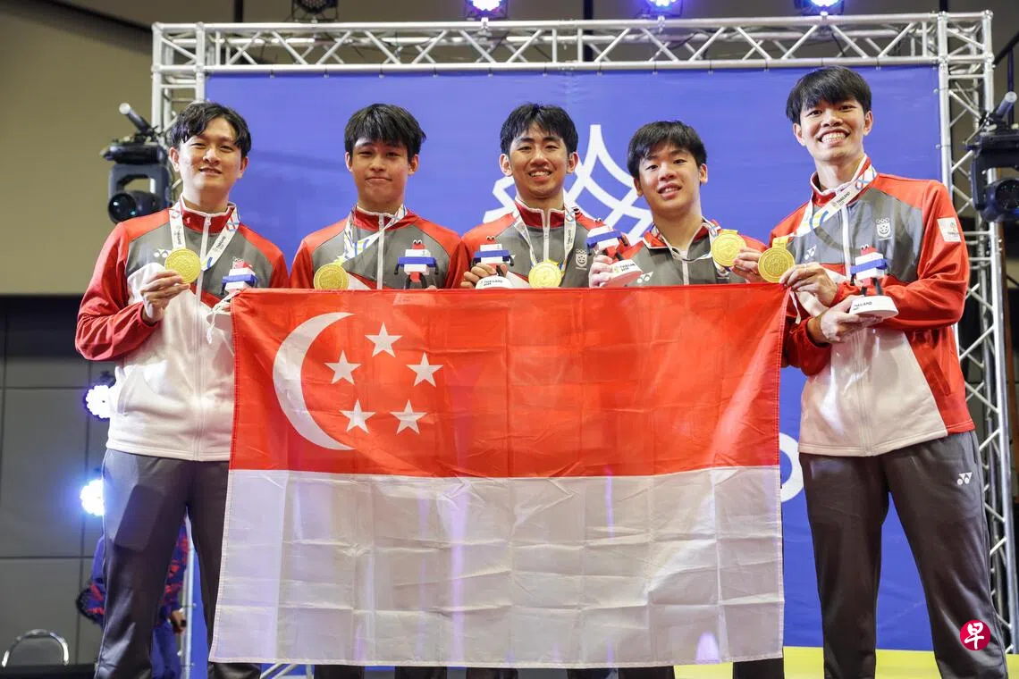 在乒乓球女队冲金失败后,我国男队接过重任,星期天(12月14日)晚上在面对球员受伤和开赛前生病的情况下,在泰国东南亚运动会决赛鏖战至泰国时间将近午夜12时(新加坡时间星期一凌晨1时),最后以3比2打败越南摘金,卫冕成功。