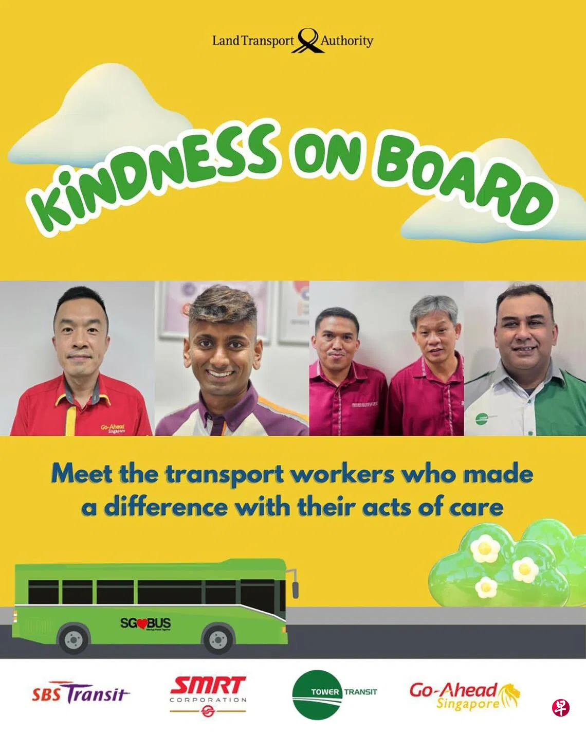 陆交局也在脸书贴文中表扬另外四名公共交通工作人员,称他们为“交通英雄”。