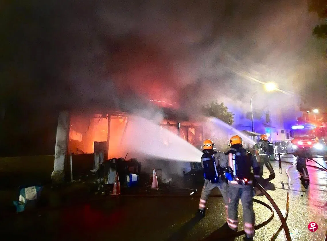 新加坡民防部队在脸书贴文指出,事故发生在星期三(12月17日)凌晨4时前后,赤果路(Chiku Road)的三个单层排屋单位(8号、10号、12号)失火,火势蔓延至毗邻单位。