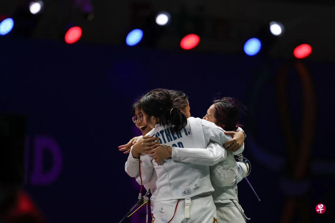 新加坡女子重剑队星期四(12月18日)在泰国东南亚运动会艰难战胜东道主泰国队,赢得团体冠军。