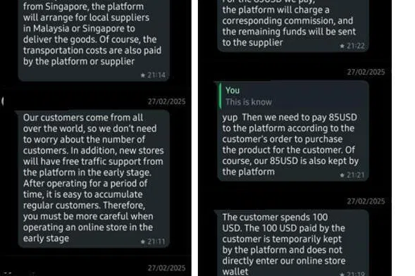 《新明日报》上星期三(12月10日)报道,一名57岁的女培训员在社交媒体TikTok上看到关于 “赚外快”的广告,点击后填入个人资料,随后一名叫威廉的男子在10月18日联系她,并讲解流程。