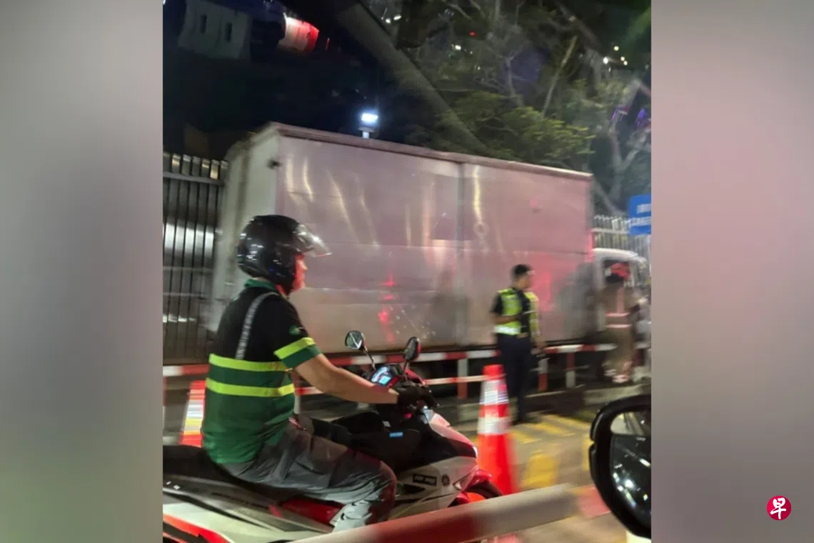 网络流传的照片显示,一辆罗厘撞上关卡最左边、电单车车道旁边的篱笆,车轮相信冲上路堤,当局人员封锁车道,导致所有电单车只能改道,使用汽车车道通关。