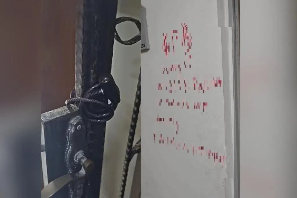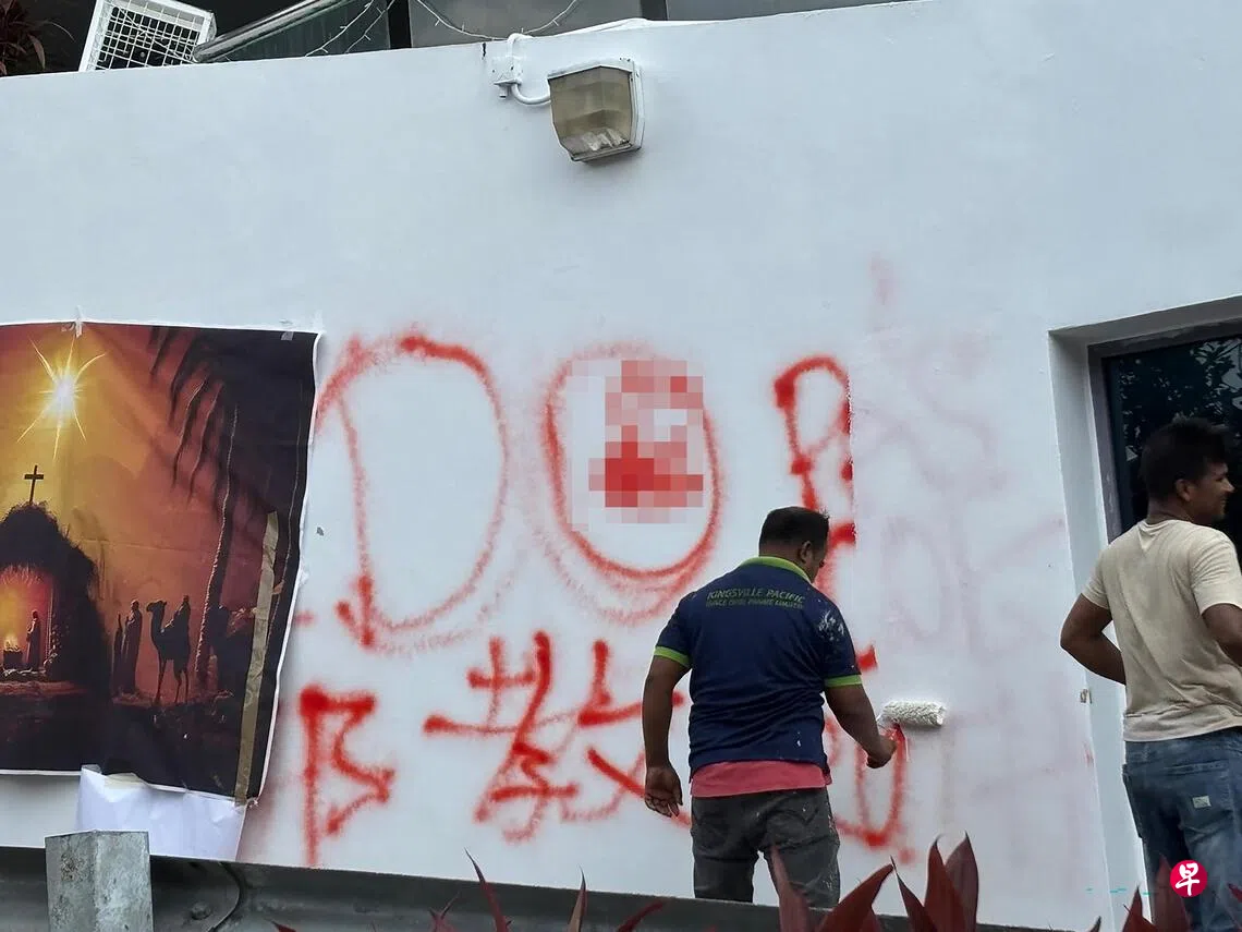 警方星期五(26日)晚发文告说,警方是在星期四早上9时15分接获求助通报,警方抵达现场时,发现建筑外墙和停车场的三辆小型货车,遭人用红漆喷写上冒犯性字眼。当局事后也在现场起获一罐红色喷漆作为证物。