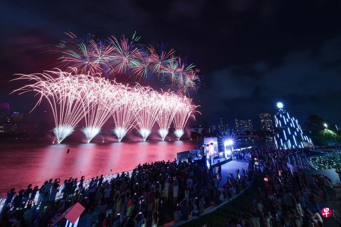滨海湾的烟花表演则从晚上11时开始,分四个章节燃放,至午夜12时10分,总长30分钟。