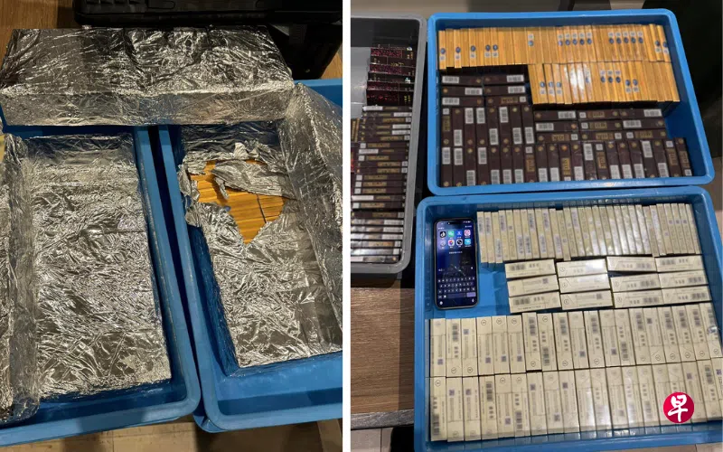 36岁中国籍男子入境时将209包漏税烟用铝箔纸包裹,企图瞒天过海,但终被识破,在樟宜机场被捕。