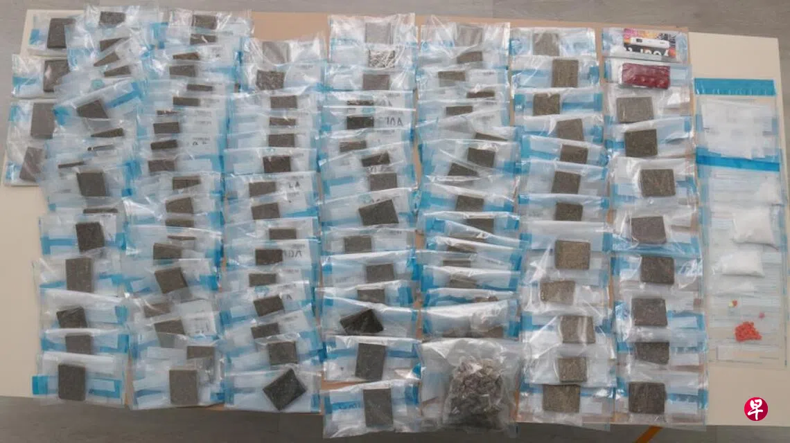 他们在房内搜出并扣押约7144克大麻、169克冰毒、9克氯胺酮(Ketamine,俗称克他命)、30克爱它死药丸(俗称摇头丸)、30粒艾利敏5号药片,以及相关吸毒工具。