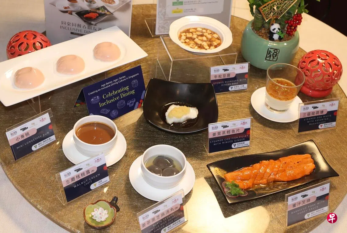 根据食物的软硬度与质地,新加坡社科大学与两家餐馆展开合作,试点推出专为吞咽困难者设计的菜单与餐食。