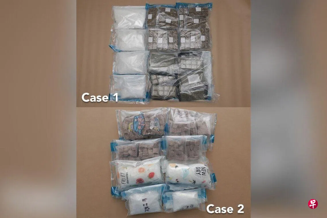 去年12月22日,执法人员在检查一辆马来西亚注册车辆时,从乘客的随身包搜出两个疑似受管制药物的黑色包裹。执法人员随即通知中央肃毒局到场进一步调查,最终总共搜到七个包裹,起获约3.272公斤大麻和1.709公斤冰毒。