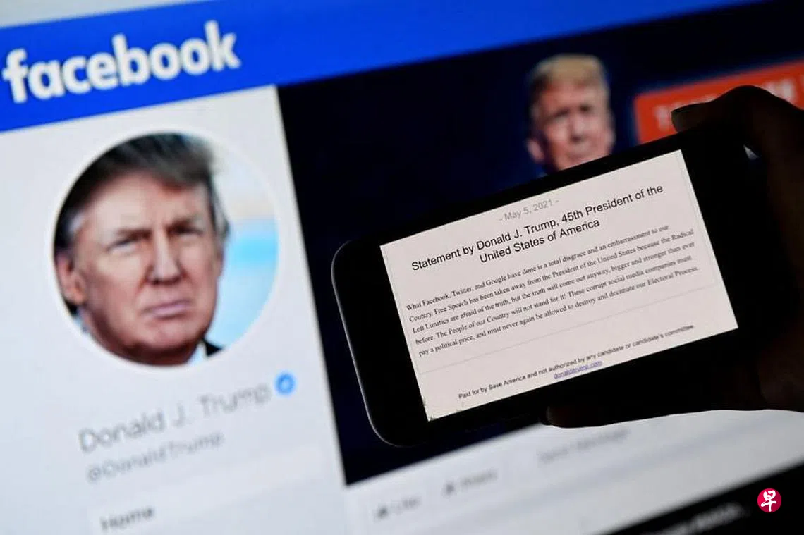 (早报讯)美国社交媒体平台面簿(Facebook)周五(4日)宣布,将美国前总统特朗普在面簿及旗下社交平台账号的封禁时间延长至2023年1月7日,届时将再次对取消封禁进行风险评估,以决定是否进一步延长封禁时间。