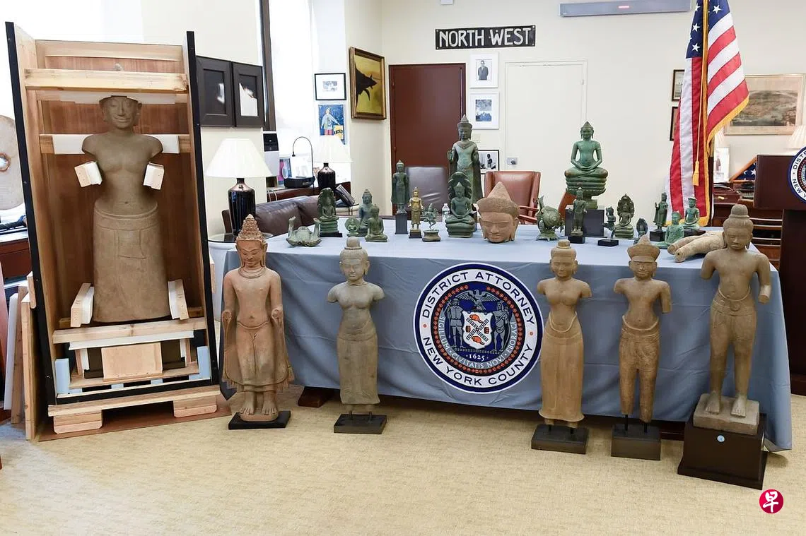 (早报讯)美国宣布将27件文物遣送回柬埔寨,其中包括印度教和佛教雕像。
