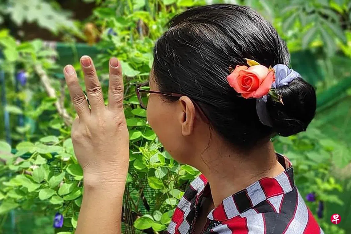 法新社报道,翁山淑枝经常在她的发髻旁插上鲜花。周六,许多反政变示威者效仿翁山淑枝的头发造型,在头发上插鲜花,并拍照上载到社交媒体平台,向这位全国民主联盟领袖送上生日祝福。