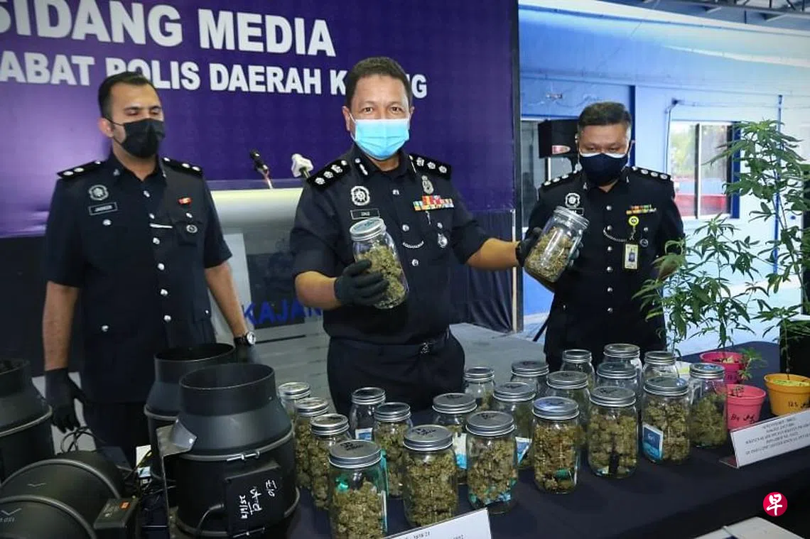 (早报讯)新加坡籍父子3人越堤到马来西亚租下三层楼独立式洋房种植大麻树,以瓶装的大麻干叶供给当地及亚洲市场牟利,但他们的不法生意在他们运营4个月后,进入警方的侦察网,而遭上门突击的警方一网打尽。
