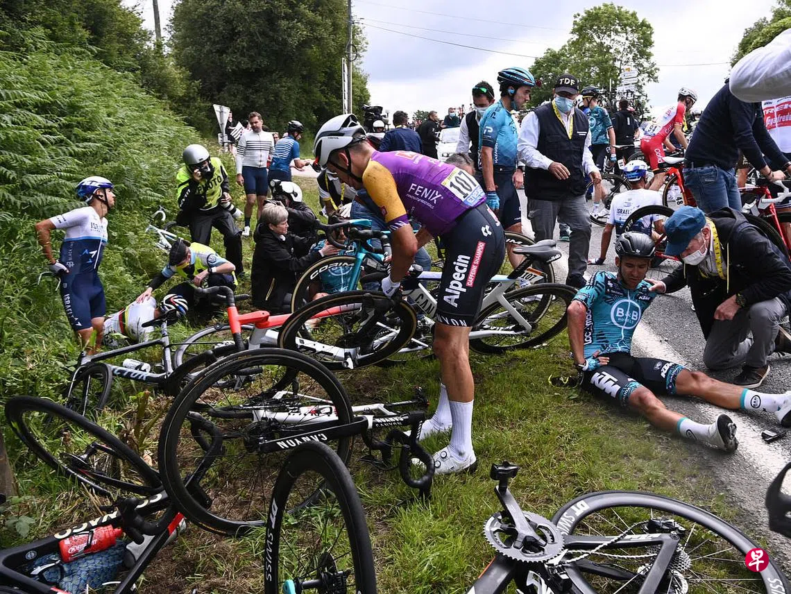 据报道,赛事6月26日刚开始没多久,该名女子便突然举着大型的加油牌侵入赛道,导致最靠近她的选手马丁(Tony Martin)应变不及,因此摔车倒地,其后也有多名选手因此受害,更有人因伤退赛。