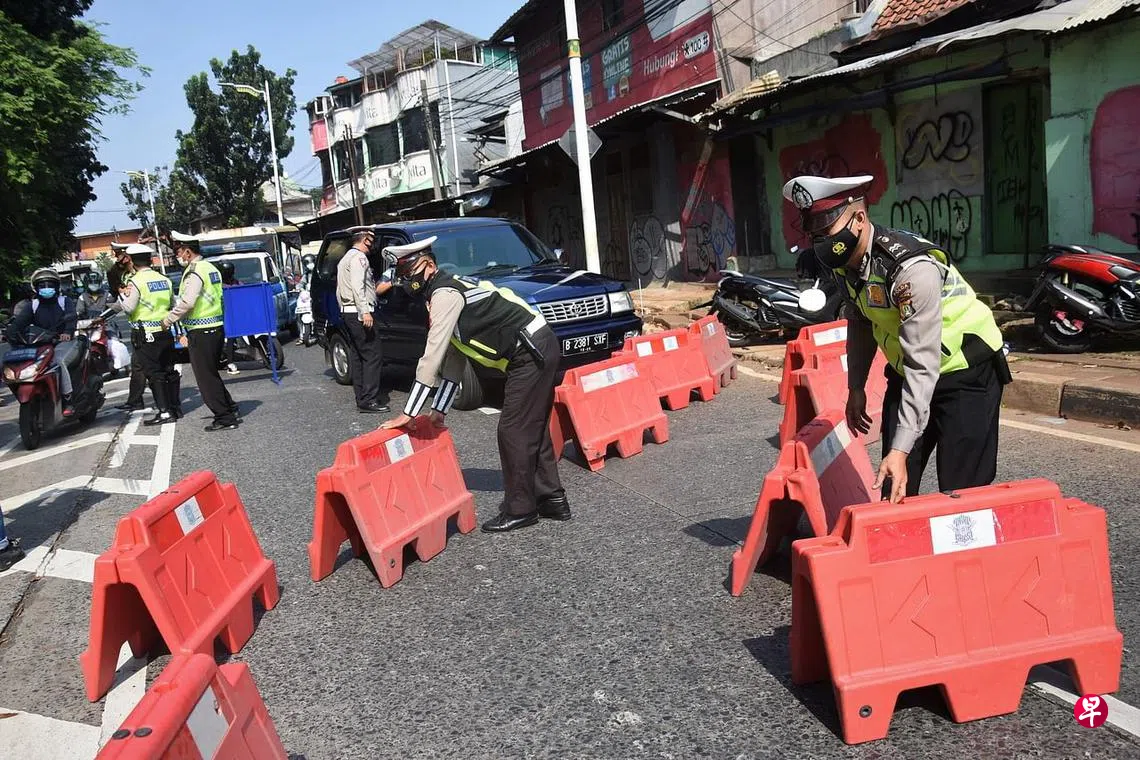 路透社报道,为确保人民遵守封锁措施,印尼警方在爪哇岛和峇厘岛设立了超过400个检查站和路障,动员超过2万1000人员加强巡逻,并进行随机冠病检测。
