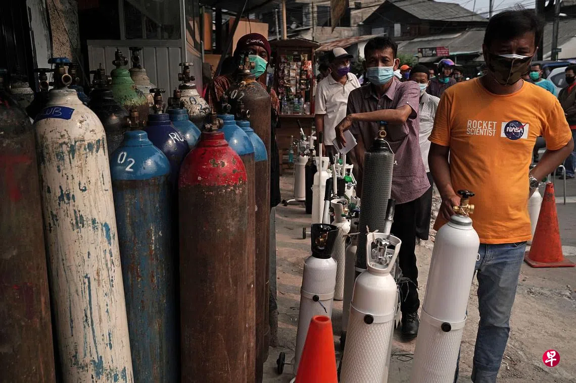 (早报讯)印尼医疗系统不堪重负,当局计划进口氧气筒以对抗新一波疫情。