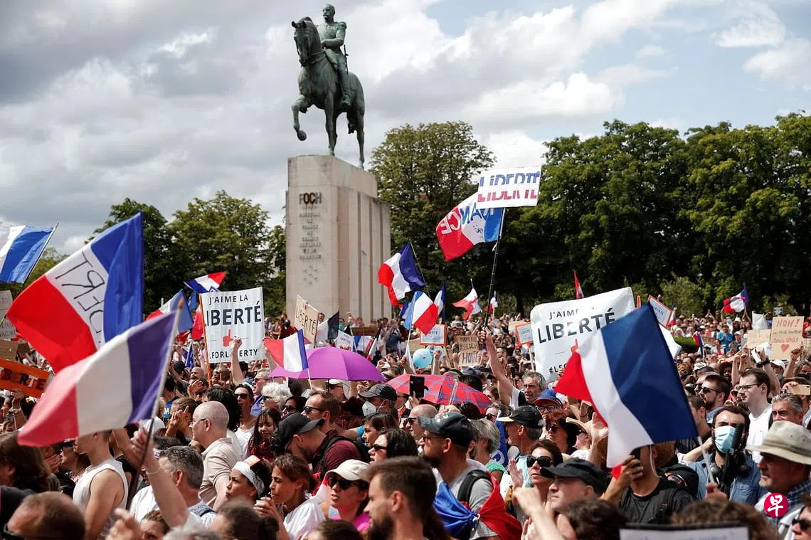 在法国,全国各地总共有16万人走上街头,高呼“自由”口号,并举着“反对可耻通行证”等标语牌,抗议总统马克龙推出健康通行证计划。这一计划据悉会严格限制未接种疫苗者不得进入餐厅和公共场所。警方动用催泪弹和水柱驱散抗议群众。